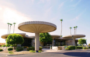 Currently under redevelopment as a boutique hotel and residential project, the exterior remains the most recognizable silhouette in the Midtown skyline. The building is best viewed from the Valley Metro light rail stop at Central and Osborn, where the curves and gold shimmer project pure 1960s optimism about what corporate architecture could be.