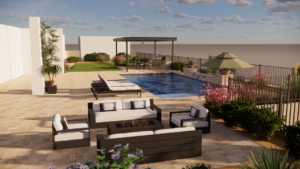 “We always start by walking through the house on the way to the backyard,” he says. “That first experience of the space — moving through the interior before you arrive outside — is where the design begins.”
