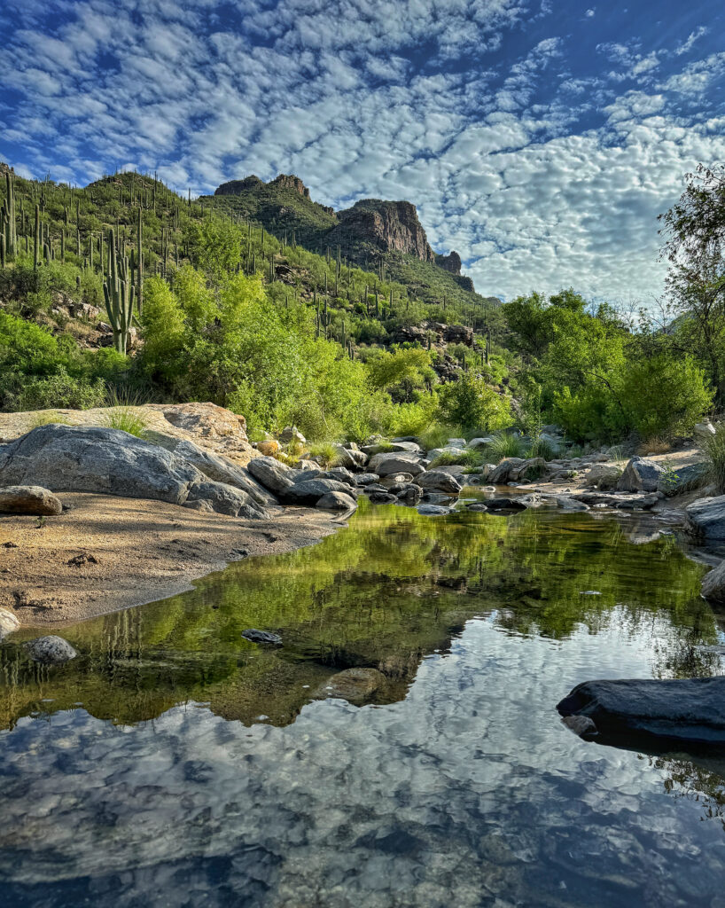 When rain finds its way to the washes and trails around Arizona — whether from winter storms or summer monsoons — something magical happens. Puddles form — ephemeral, fleeting, destined to vanish within hours under the relentless sun.