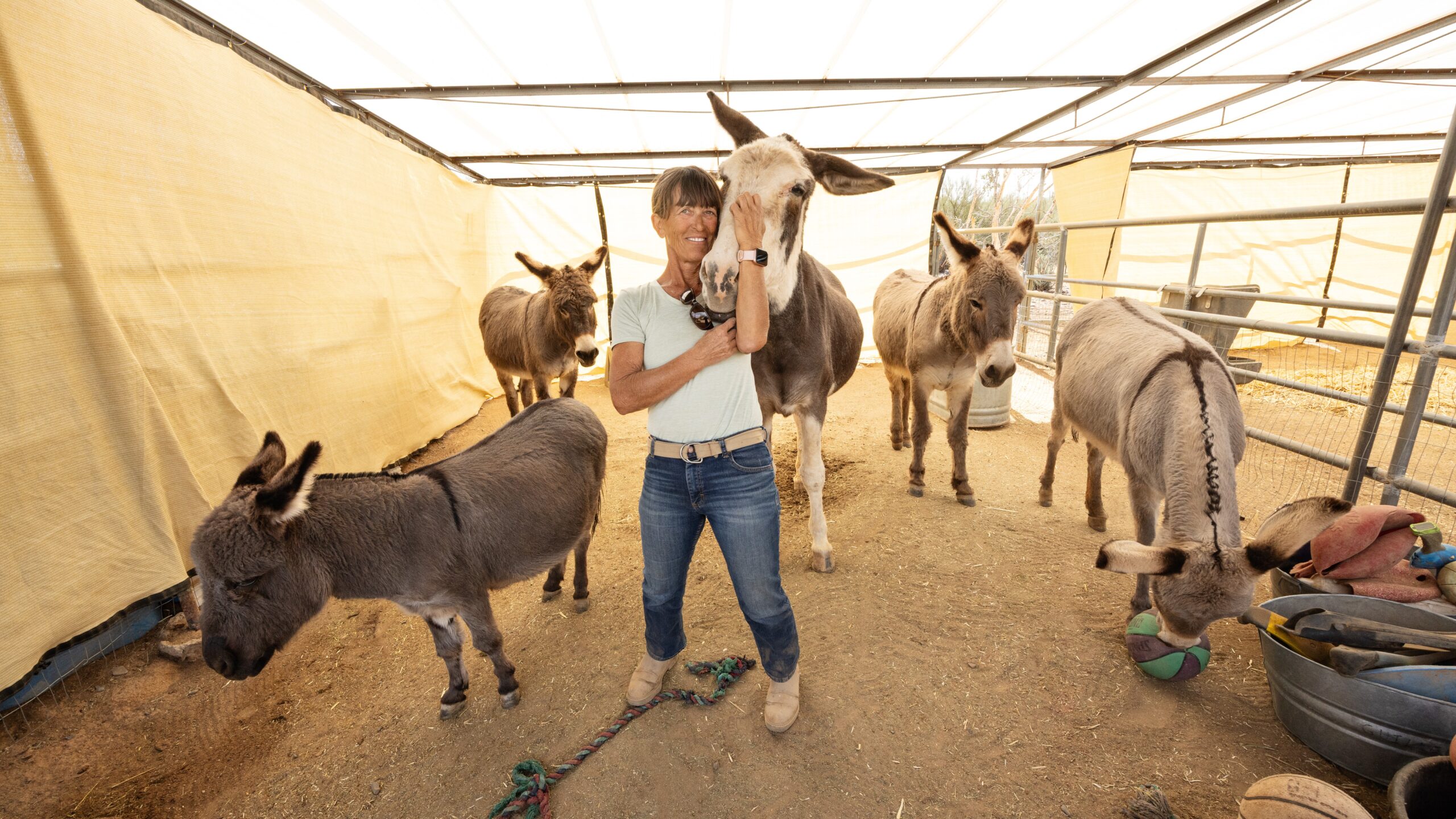 Starting with just four donkeys — two formerly feral and two rescued minis — Rainer navigated the challenges of launching during the COVID-19 pandemic. After relocating to Cave Creek, she began working with clients and expanded her herd to seven donkeys, each with its own distinct personality.