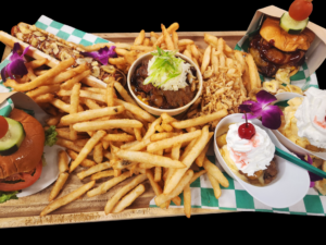 Fans can feast on smoky barbecue brisket sandwiches topped with chef-curated sauce and coleslaw or a steamy, creamy bowl of macaroni and cheese — plain or topped with brisket or pulled chicken from Hudson’s Barbecue. Inspired by the King himself, The Hound Dog is an Elvis eccentricity topped with peanut butter, jelly, banana chips and edible gold dust. Private hospitality areas feature the blazing spectacle of bananas Foster from Chef Ryan Kagimoto.